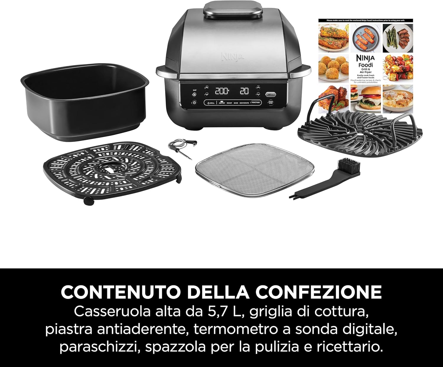 Scopri Ninja Griglia e Friggitrice ad Aria 5 in 1: 5 funzioni di cottura per piatti croccanti e gustosi con meno grassi in un solo elettrodomestico